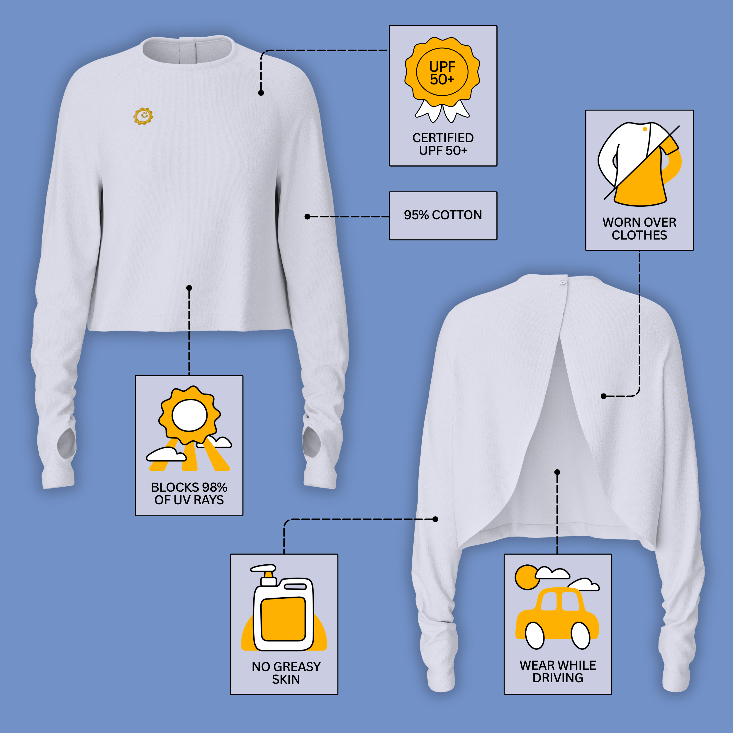This is exactly what I've been needing for sun coverage while driving. Light, comfy and looks nice worn as a shirt/cardigan for walking/exercise or a day outdoors with the kids.